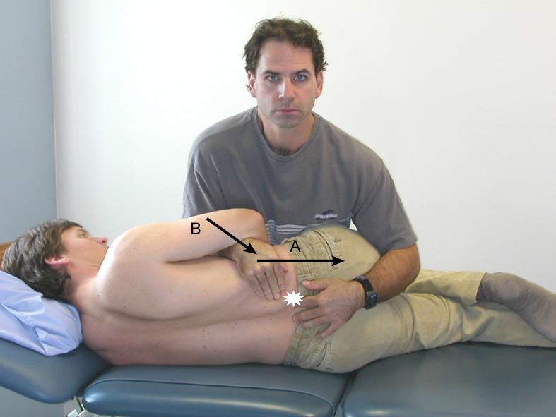 hand. Use cranial arm to push thorax and L4 caudal (arrow