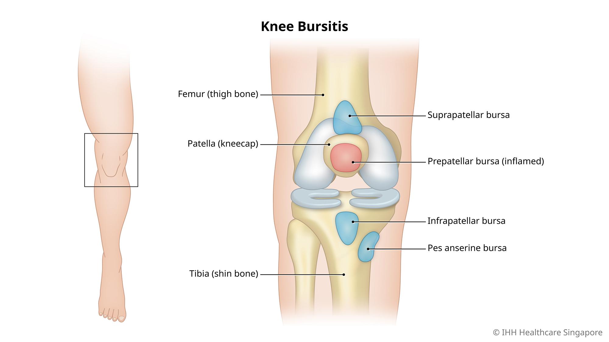 This type affects the bursa located directly on the front of the kneecap. This is typically caused by frequent or prolonged kneeling, direct trauma/repetitive pressure to the front of the kneecap, or sometimes by local infection. It can also be caused by running in some cases. Symptoms can include visible swelling, warmth, tenderness directly over the kneecap, discomfort with bending the knee, and pain when kneeling.